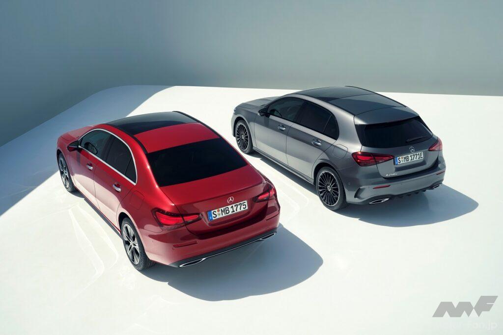 欧州市場に投入された新型Aクラス。フロントフェイスは力強さとダイナミズムを感じさせるデザインが採用されている。2つのパワーバルジと急前傾した「シャークノーズ」ボンネットに、スターパターンを持つラジエーターグリルなどがそれだ。ハッチバックのサイドグリルはサルーンモデルよりも拡大されており、さらなるスポーティさを演出。ホイールは最大19インチのサイズで4種類のリムデザインが追加されており、新開発のリアディフューザーと標準装備LEDライトにより、魅力的で情緒的な外観を実現している。
