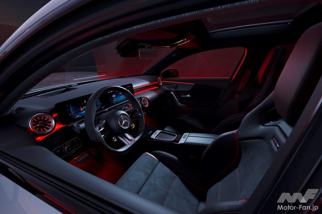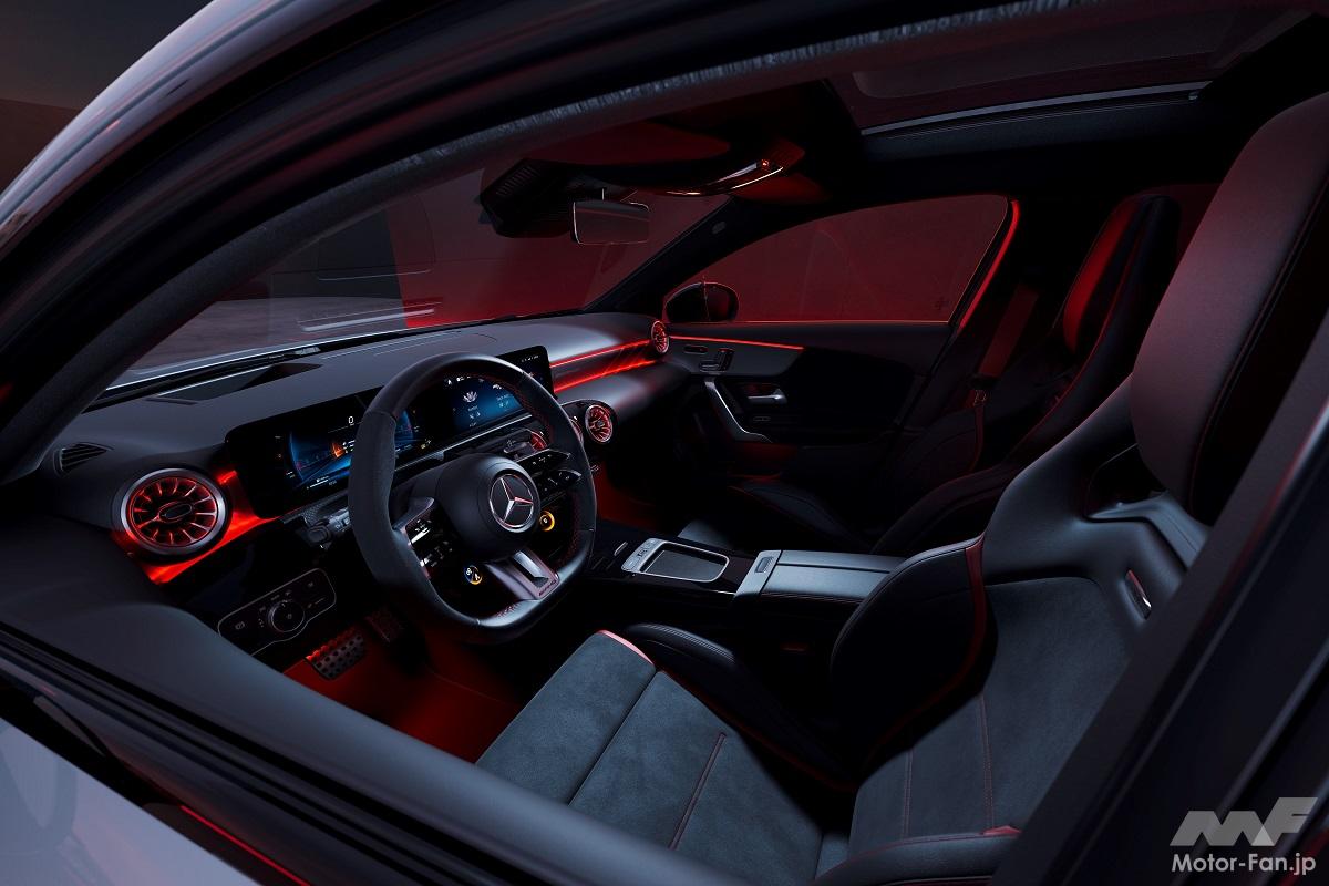新型Aクラスでは、ハードウェアとソフトウェアの両方が大きく進化している。最新世代のMBUXソフトウェアにより、直感的な操作ができるようになり学習能力も備えている。中央スクリーンからは、ナビゲーションをはじめ、メディア視聴、ハンズフリー電話、車両特性設定などを行うことができる。デジタルメーターの表示パターンは、汎用性に優れたクラシック、レブカウンターを表示するスポーティなど豊富に用意されており、自由にカスタマイズすることができる。