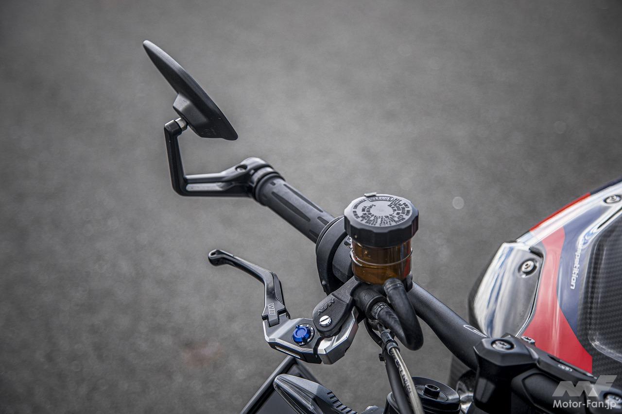 予想外にエンジンが扱いやすかったことに気を良くしたが、エンジン同様に素直で追従性に優れたハンドリングを見せてくれました。リッターマシンでありながらミドルクラス並みの軽さを実現した車体は、走らせていてコンパクトに感じるほどで、交差点を曲がる、カーブをコーナリングするといった動作が非常に軽快なのが印象的です。前後タイヤの接地感もしっかりと伝わってくるので、コーナリングラインの修正やコントロールもしやすく、年甲斐もなく攻めたくなってしまう衝動にかられました。今回は市街地だけでの試乗だったのですが、ワインディングにも持ち込んで走ってみたいと思いました。高い安定性を保ちつつ軽快に身を翻してくれる、そんな運動性はスーパースポーツに匹敵するパフォーマンスを発揮してくれるはずです。ダウンフォースを高めるウイングレットの効果については、市街地走行では実感することができませんでした。