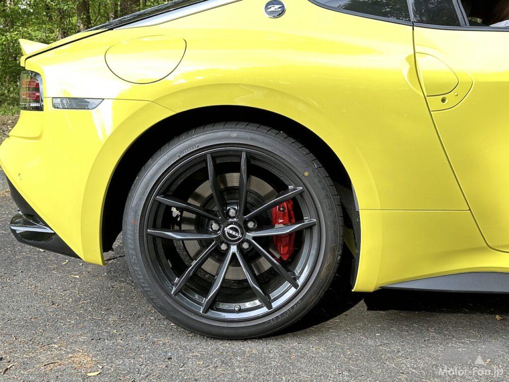 日産フェアレディZ version ST 全長×全幅×全高:4380mm×1845mm×1315mm ホイールベース:2550mm 車重:1620kg サスペンション:Fダブルウィッシュボーン式 Rマルチリンク式 エンジン形式:V型6気筒DOHCツインターボ エンジン型式:VR30DDTT 排気量:2997cc ボア×ストローク:86.0mm×86.0mm 圧縮比:10.3 最高出力:405ps(298kW)/6400rpm 最大トルク:475Nm/1600-5600rpm 過給機:ターボ 燃料供給:DI 使用燃料:プレミアム 燃料タンク容量:62ℓ トランスミッション:9速AT 駆動方式:RWD WLTCモード燃費:10.2km/ℓ 市街地モード6.6km/ℓ 郊外モード10.9km/ℓ 高速道路モード12.6km/ℓ 車両価格:646万2500円 メーカーオプションオプション(イカズチイエロー/スペシャルブラックの特別塗装色8万8000円)