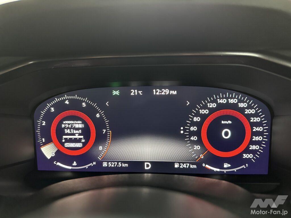 今回の総走行距離は527.5km。高速道路の比率が6割ほどとはいえ交通状況は渋滞もあってけっして理想的だったわけではない。にもかかわらず、トータルの燃費は14.1km/ℓだった。つい先日、スバルWRX S4を同じような走り方でドライブしたときの燃費が11.46km/ℓだったから、新型フェアレディZの燃費の良さは際立つ。
