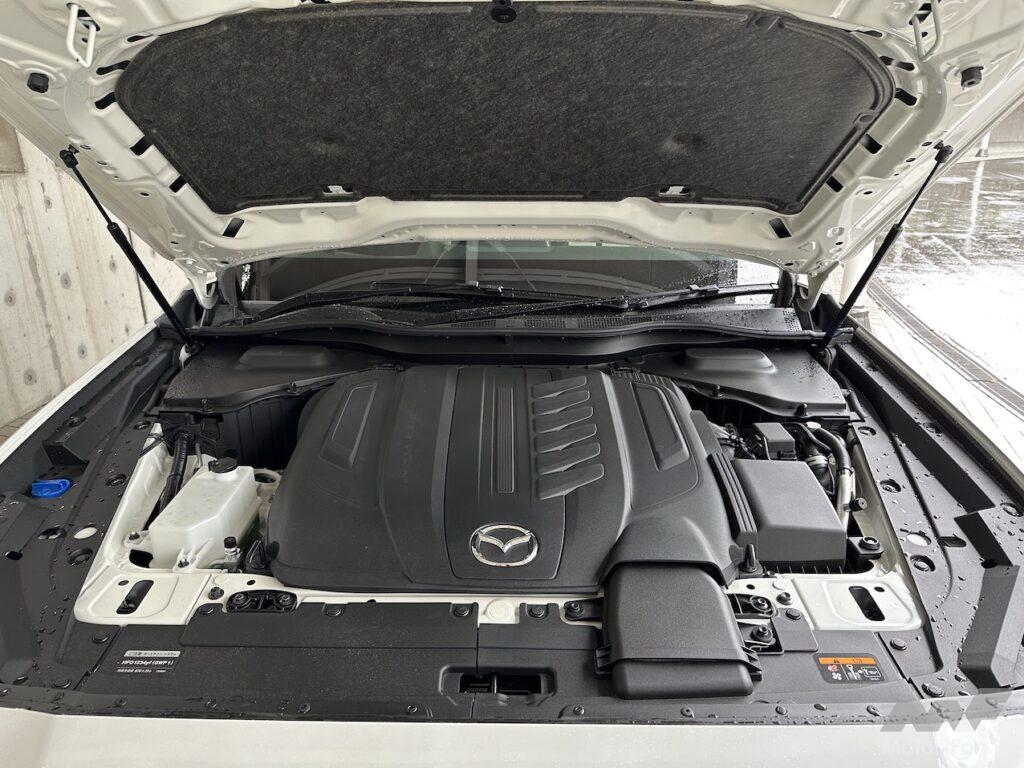パワートレーンはSKYACTIV-D3.3に48Vマイルドハイブリッドシステムを組み合わせた「e-SKYACTIV D」。もちろん話題の直列6気筒エンジンである。