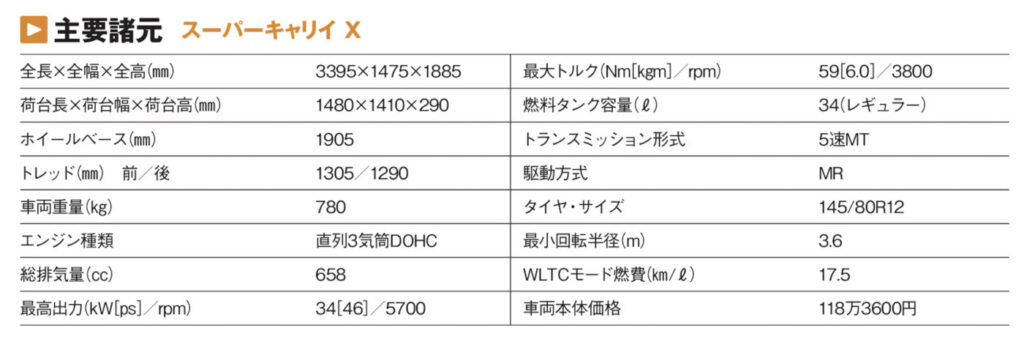 1961年から多くの仕事人に愛されてきた軽トラックのキャリイ。 現行モデルは2013年に登場した十一代目で、パッケージングの見直しにより車内空間も荷室も広くなり、軽自動車の枠をミリ単位で有効活用している。18年にはキャビンを大型化したスーパーキャリイを追加。