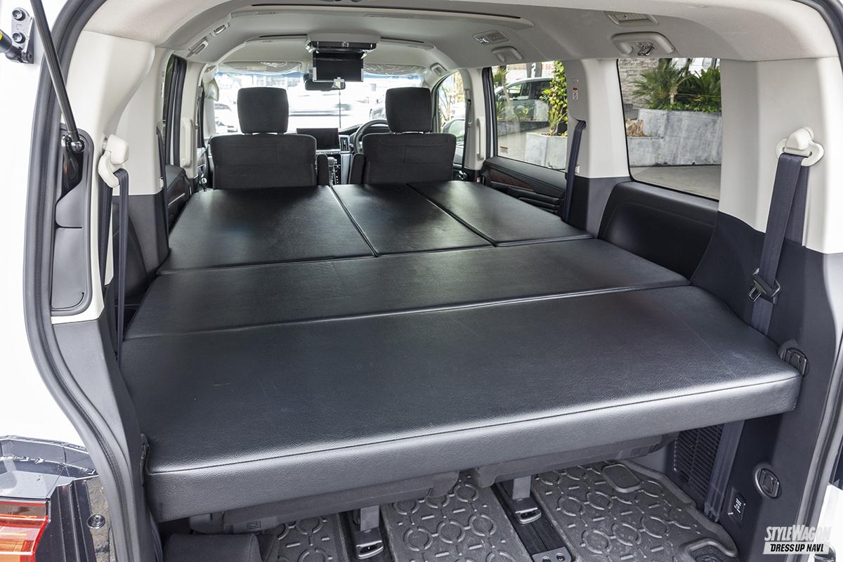 また、この新作ボディキットを装備したデリカD:5は、アルパインスタイルでのコンプリート購入が可能だ。同社コンプリートカーのウリである、オーディオ&カーエンタメ関係についてもD:5専用アルパインBIGーX11型ナビやドラレコ付きデジタルミラー、10.2型リアビジョンなど充実。さらにリアには専用のマルチベッドキットと、レジャーシーンの楽しみを広げるアイテムなどを搭載した、D:5の魅力をさらに高めた仕様だ。