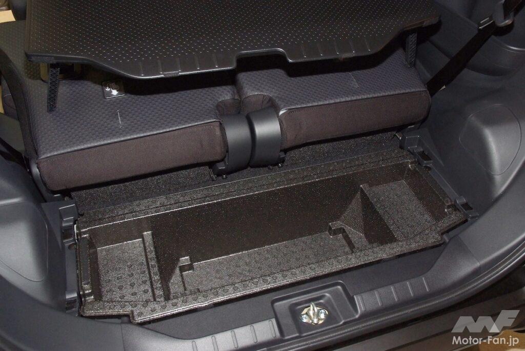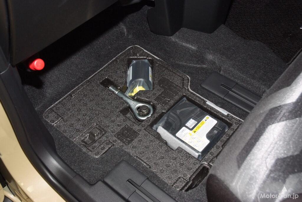 合わせて、タイヤパンク応急修理セットを元々デッドスペースであった助手席床下に移動することで、ラゲージアンダーボックスを収納スペースとして活用できるようになっており収納力を高める工夫を施している。