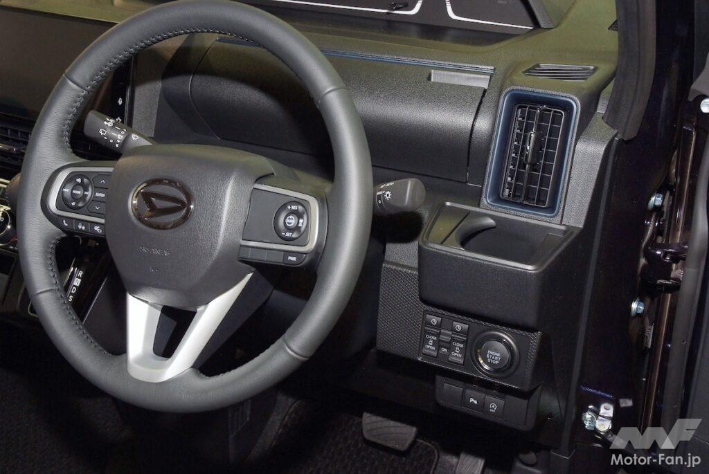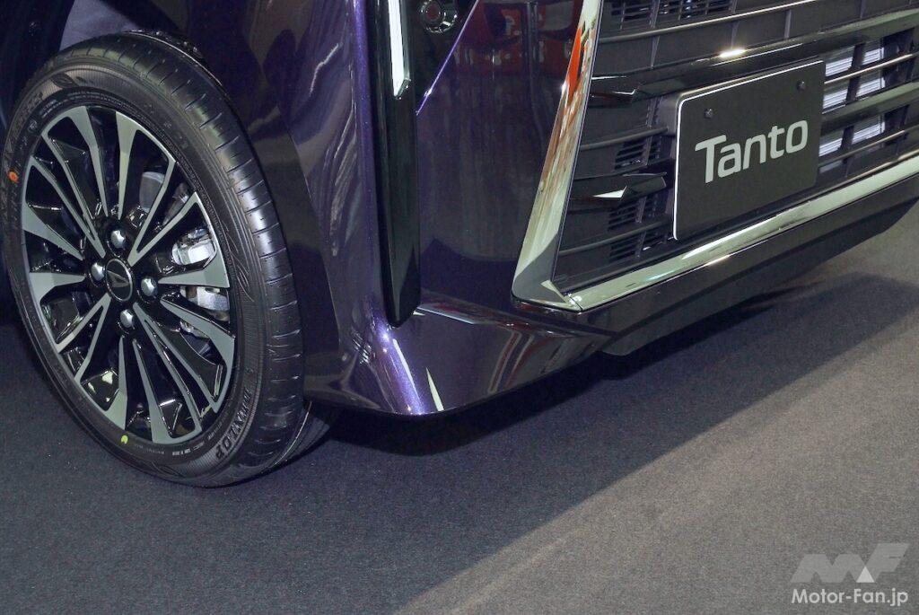 立体感とワイド感を強調したフロントマスクはカスタムのルックスをより迫力のあるものにしている。バンパー左右下端をリップスポイラーのような造型として、専用デザインのアルミホイール(カスタムRS:15インチ/カスタムX:14インチ)と合わせてスポーティな印象も与えている。