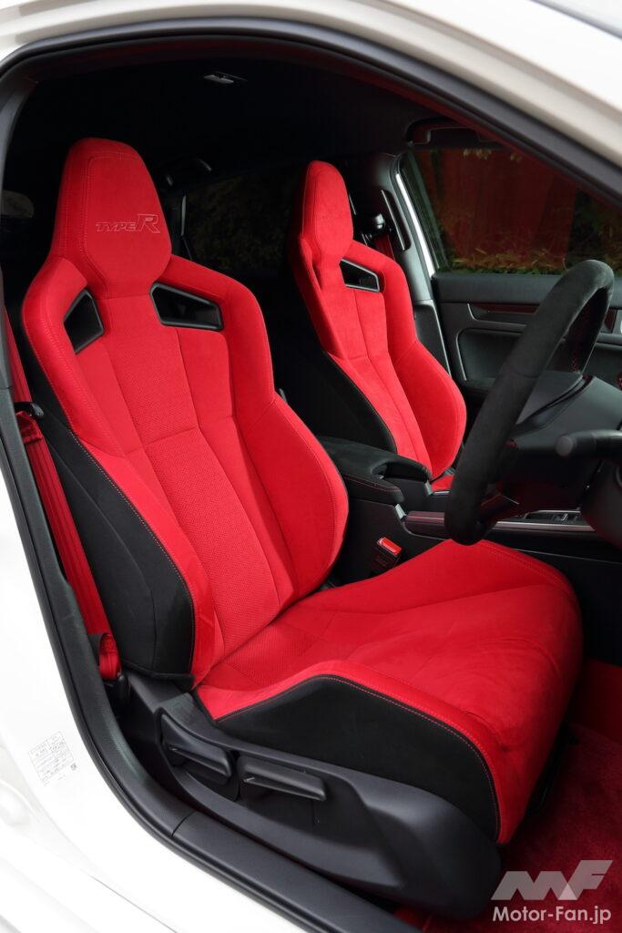 両車ともにベースモデルの基準車と多くの部分で共通となるインパネは、日常的に使いやすいしつらえで、フェアレディZやスープラのような「スポーツカー然」としたインパネと比べると、落ち着いた印象だ。その中でやはり、タイプRの真っ赤なシートとフロアは強烈で、この配色だけで特別感を十分に煽られる。配色だけでなく「+R」モードやデータロガーなど、タイプR独自の機能も数多く用意されている。