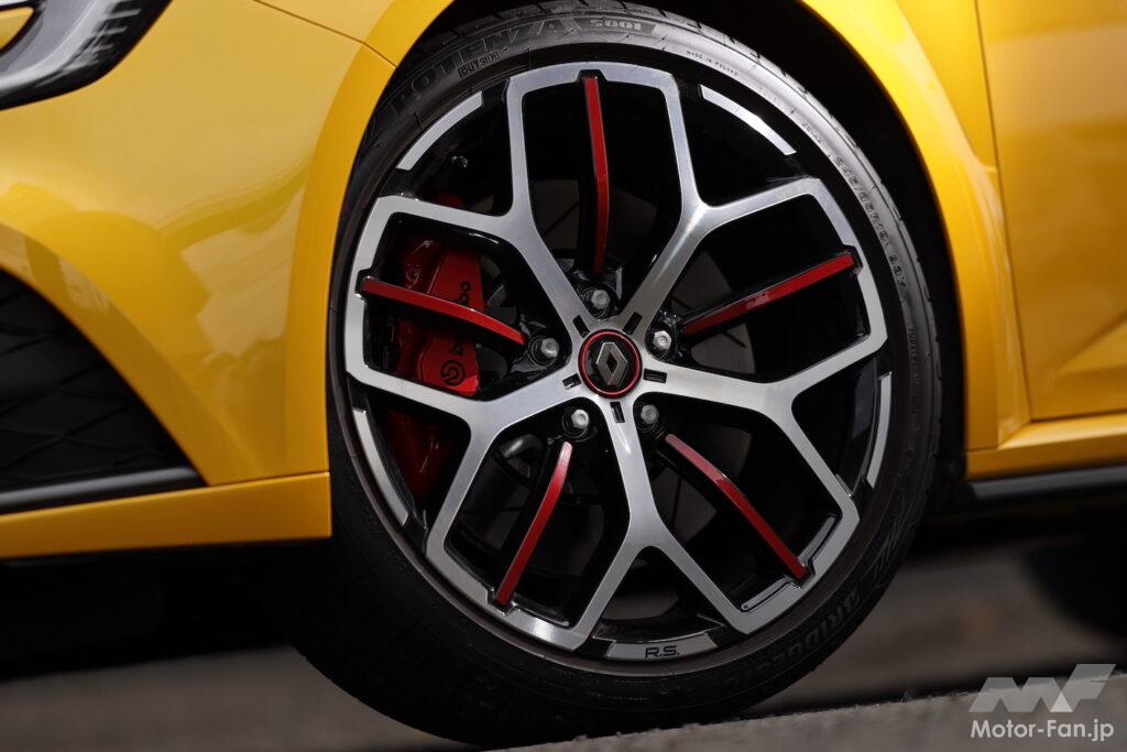 メガーヌR.S.もタイプR同様19インチ。こちらも十分に太いが、シビックと比べると2サイズダウンの245を採用する。タイヤ銘柄はブリヂストン ポテンザS001。国産車がフランスのタイヤ、フランス車が国産のタイヤを装着するのが面白い。
