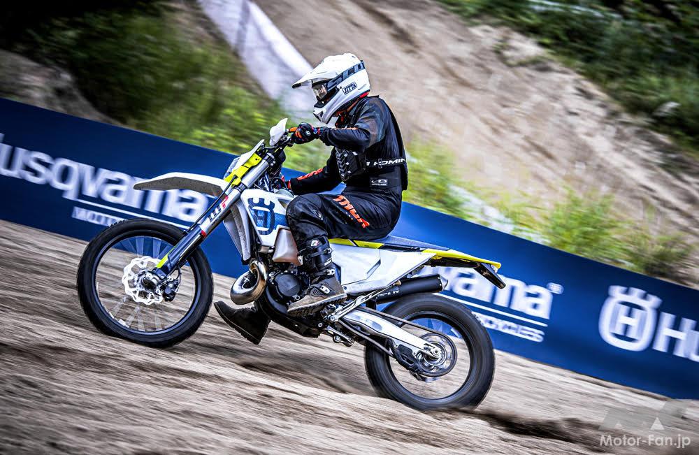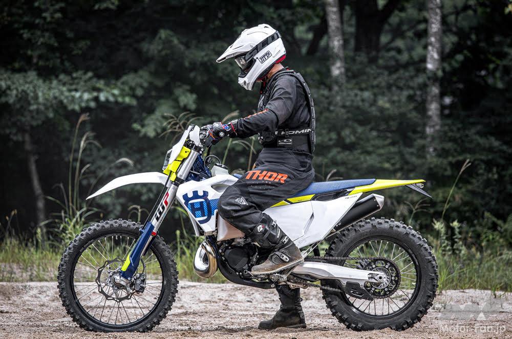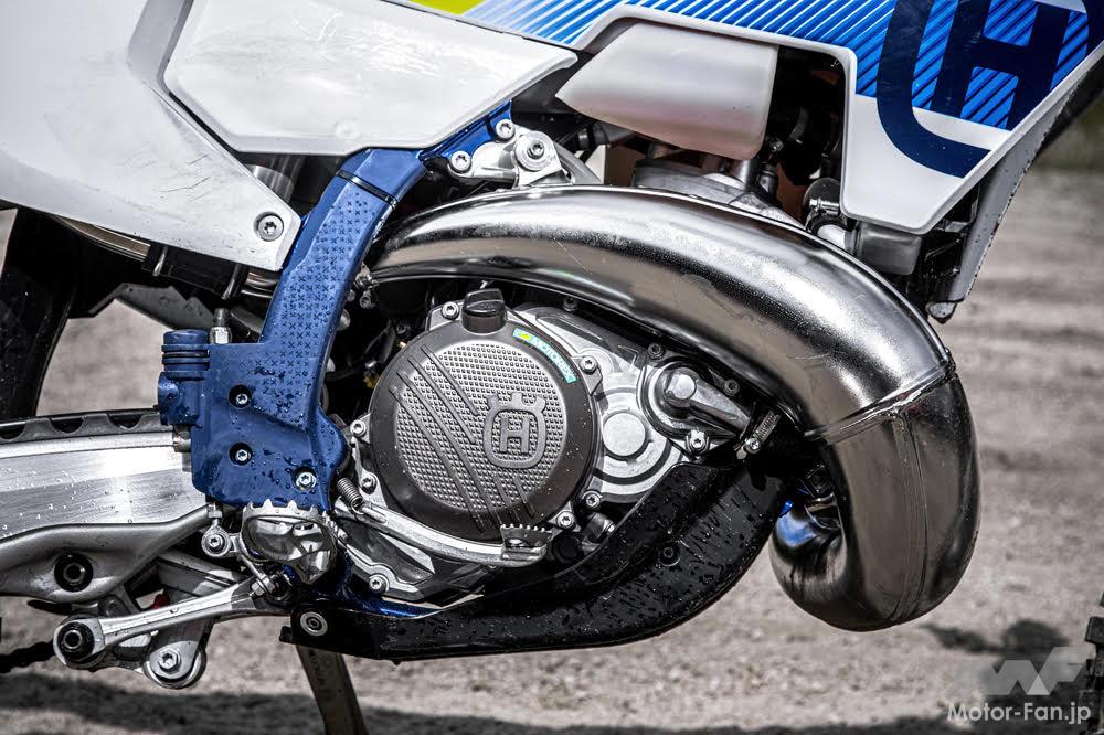 エンジン型式:水冷2ストローク単気筒 EMS: Vitesco Technologies製 総排気量:249cc 始動方式:セルスターター式 変速機:6速 燃料供給方式:Keihin製 EFIスロットルボディΦ39mm サスペンションF:WP製 XACT48倒立フォーク サスペンションR:WP製 XACTリンク式モノショック タイヤF / R:90/90-21” / 140/80-18” 車輌重量:約107.0kg(半乾燥)