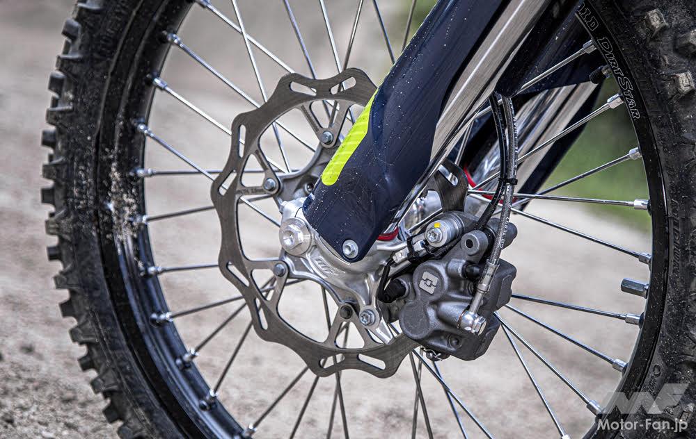GSKディスクプレートを備えたブレーキテック製のキャリパーや、プロテーパー製のハンドルバーやミシュランのエンデューロタイヤを履くなど、他のハスクバーナエンデューロモデルと共通のコンポーネントを採用している。