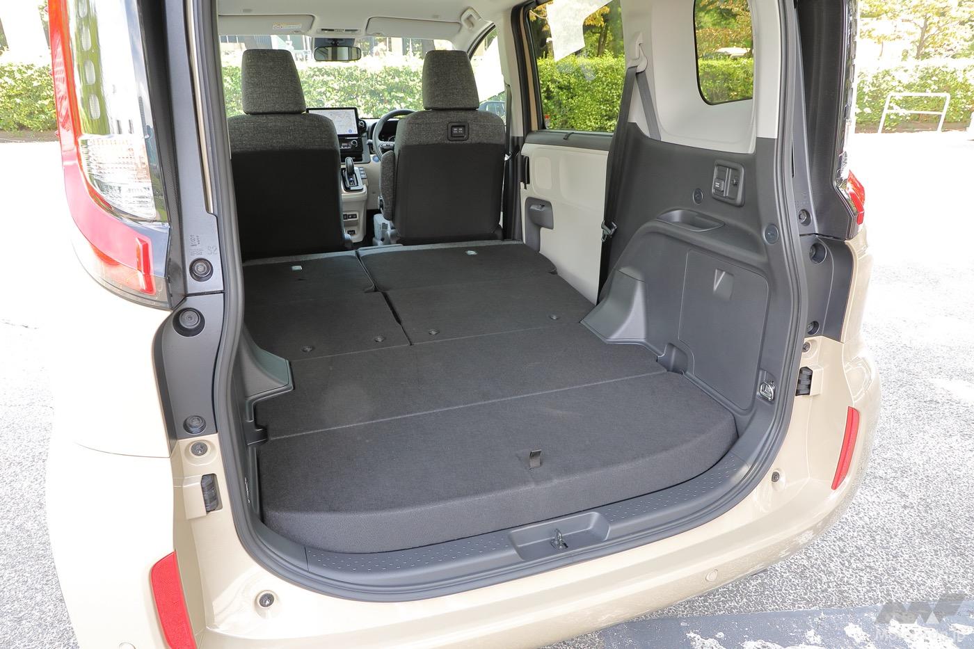 ダイブダウンなので格納時は当然フラットで、この状態であれば日常の買い物程度あれば何ら不足はないだろう。