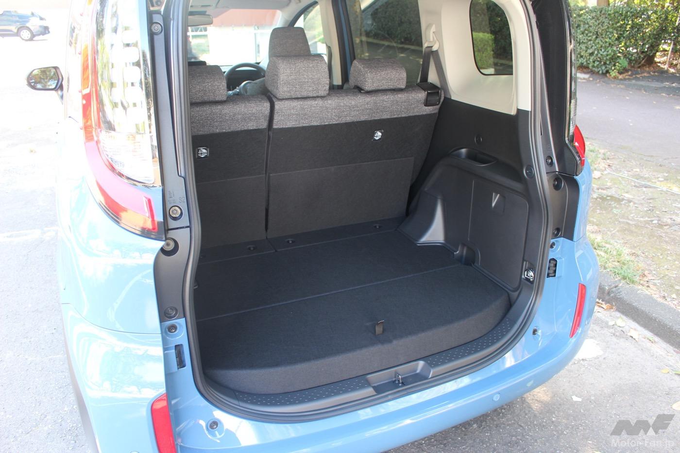 最大時の荷室奥行きは、2045mmとなり、マットを敷けば車中泊も可能だ。なお、先代のラゲッジボード(デッキボード)は、反転させると樹脂製になり、荷室高を稼ぐことができたが、新型のラゲッジボードも反転させると荷室に収まるものの、少し隙間があり、しっかりと固定されない。新型では、反転させて使うことは想定していないそうだ。