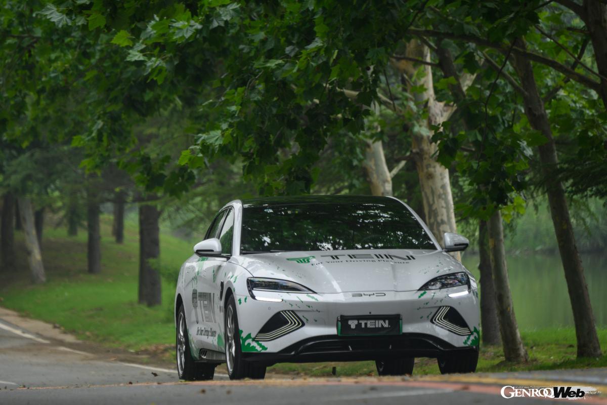 そのテスラ・モデル3も車高調整式のフレックスZに交換すると(減衰力は16段階の真ん中、車高は-20mmほど)見違えるようにスポーティに変身した。標準品よりもスプリングレートが上がっても乗り心地も損なわれない。ちょっと攻めたコーナリングではボディの挙動に頼りなさがあったBYDシールもピシッと落ち着き、強力なモーター性能を思い切り使えるようになった。最後はフレックスZに電子制御減衰力可変システムの「EDFC5」を装着して試したが、こうなるともう1000万円以上のEV並みである。