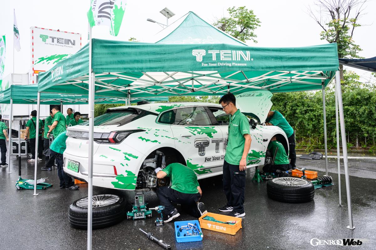 今や飛ぶ鳥を落とす勢いのBYDの「シール」は同社の“海洋シリーズ”(先日国内発売されたのは同シリーズのドルフィン)のトップモデルで、前後アクスルにモーターを積むAWDでシステム最高出力は390kW(530PS)ときわめて強力だ。ジーリー(吉利汽車)のEVブランドであるジーカー(Zeekr)の「001」は、シューティングブレークのようなボディに計400kW(544PS)を発揮する前後2基のモーターを搭載(AWD)、デザインもポルシェのタイカン・クロスツーリスモを彷彿とさせる。さらにテスラ・モデル3(スタンダードレンジRWD)とモデルY(ロングレンジAWD)という4台をまずスタンダードのまま試乗し、その後テインのサスペンション各種に交換して試した。