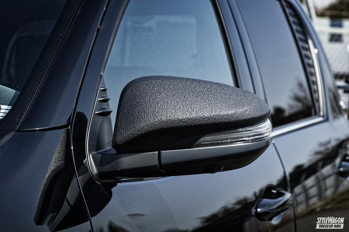 また、ドアミラーやリアバンパーなどに装着するFRP製カバーも見逃せない。純正色塗装済み+オリジナルイエローを用意し、両面テープで貼るだけという簡単装着でカラーコーデできるのだ。一方で、デモカーのように未塗装品をザラザラした質感のラプターライナーで仕上げるなど、ユーザーが自分の思うように楽しめるのも魅力。