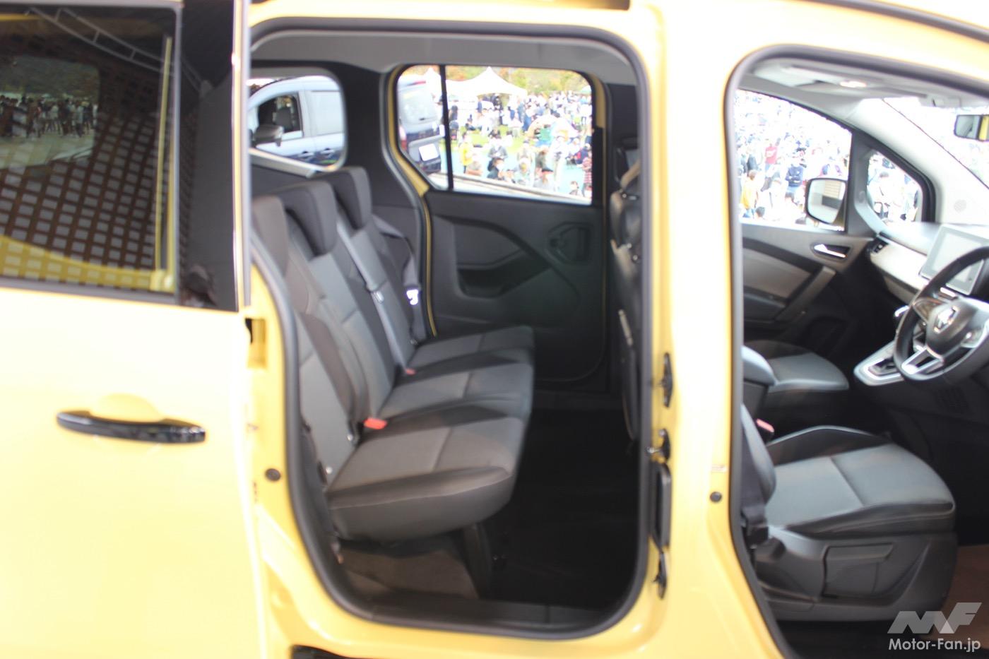 新型カングーの日本仕様は現行モデル同様に観音開きバックドアと無塗装バンパーが採用されている。この観音開きのバックドアと無塗装バンパーは欧州では商用車仕様に設定されてるものだ。欧州使用の乗用モデルはハッチバックドアとなるが、国内では利便性の高い観音開きバックドアはカングーユーザーからの人気が高いため日本仕様では現行モデルに引き続き採用されることとなった。あわせて商用仕様の無塗装バンパーも日本仕様には設定され、欧州市場向け乗用仕様と商用仕様の両方の魅力を味わうことができる。
