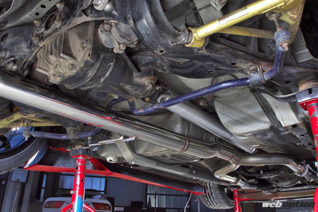 一方の足回りは、減衰力15段調整式のスタンス車高調を軸にセットアップ。アーム類はサスペンションに入力される負荷に対して、リニアに足を動かすことを目的にフルピロ化している。