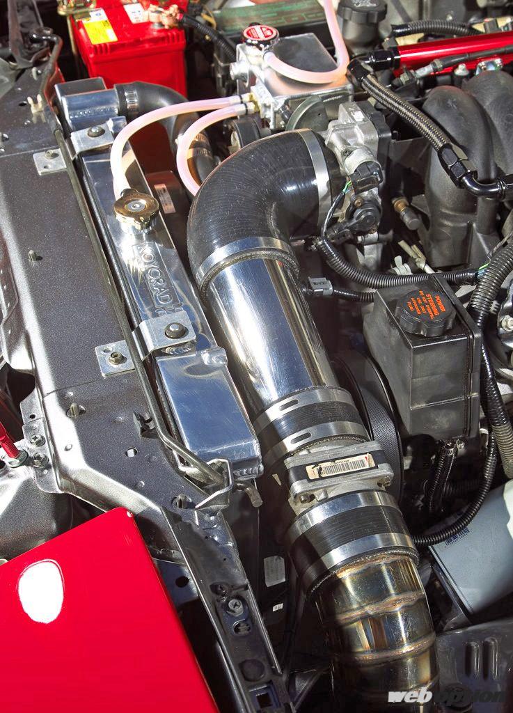 また、アメリカンV8は発熱量が大きいため、コーヨーの大容量アルミラジエターで対策。サクションパイプなどのスペースもギリギリで納められた。