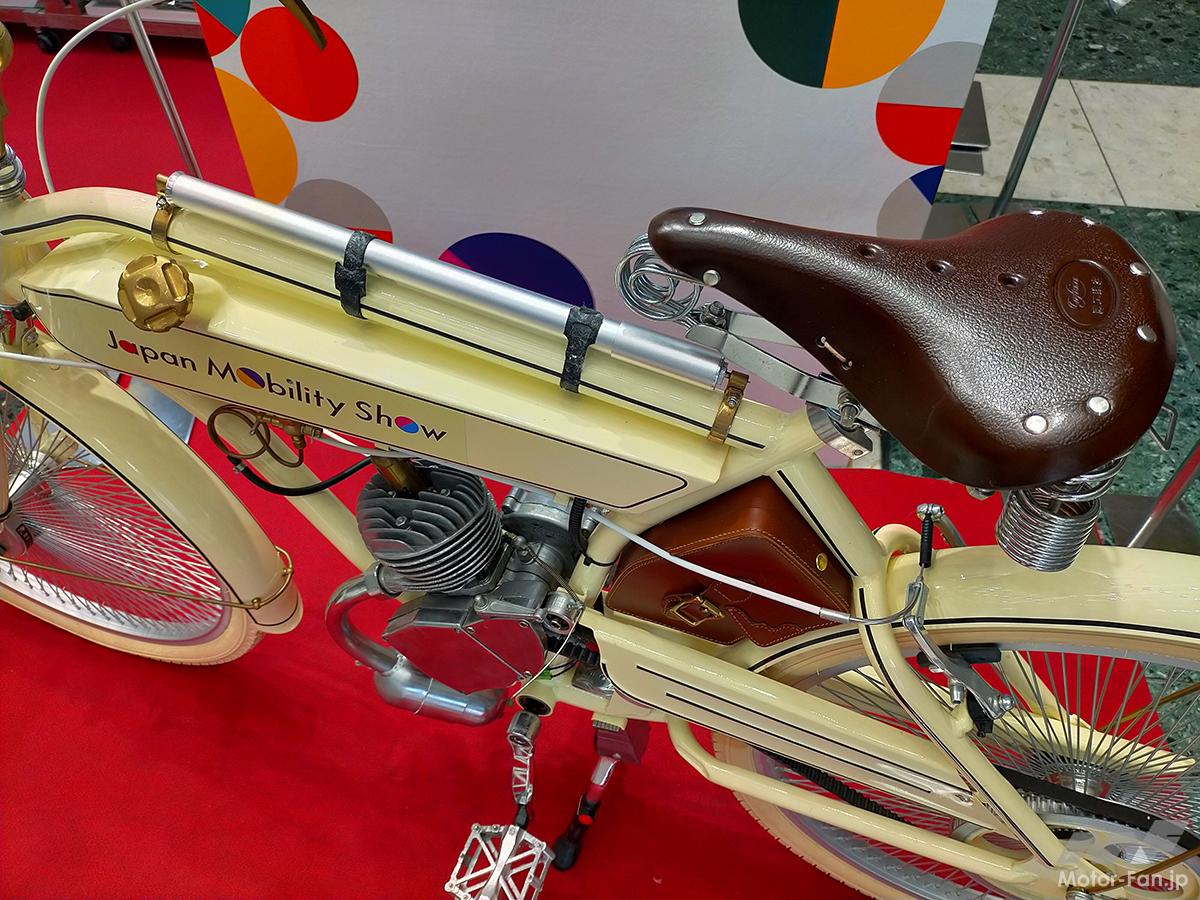 新型バイク 昭和レトロブームの今ならアリ !? 昭和20年代に流行した「バタバタ車スタイル」を演出。2ストエンジン付き装飾用モペッド【ジャパンモビリティショー2023】【写真・5枚目】 この画像の記事を読む