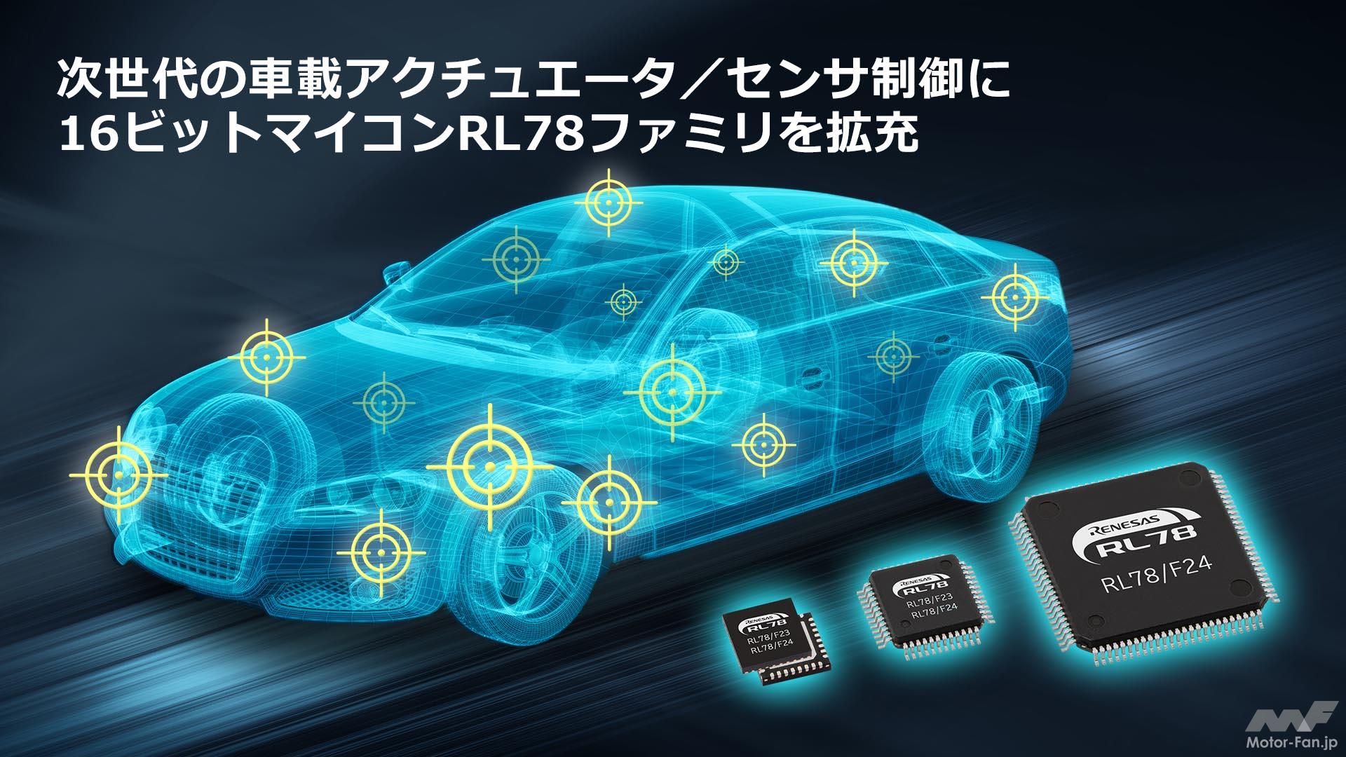 ドメインやゾーンへのE/Eアーキテクチャの進化に伴い、クルマのライトやウィンドウ、ミラーなどのボディ制御、エンジンのポンプやファンなどのモータ制御、多数のセンサ制御などの制御メカニズムも変化する。こうしたエッジ側のECU(電子制御ユニット)は、今後、ドメインコントローラやゾーンコントローラといった統合ECUと、高速かつ安全に通信することが最も重要な要件となる。ルネサスはこの進化に応えて、セキュリティと通信、機能安全を強化した次世代アクチュエータ/センサ制御用マイコン、RL78/F24とRL78/F23を開発した。新製品は、高速通信プロトコルCAN FDに対応(RL78/F24)し、EVITA-Lightのセキュリティをサポート、機能安全ISO26262 のASIL-Bをターゲットとするシステムをサポート可能。
