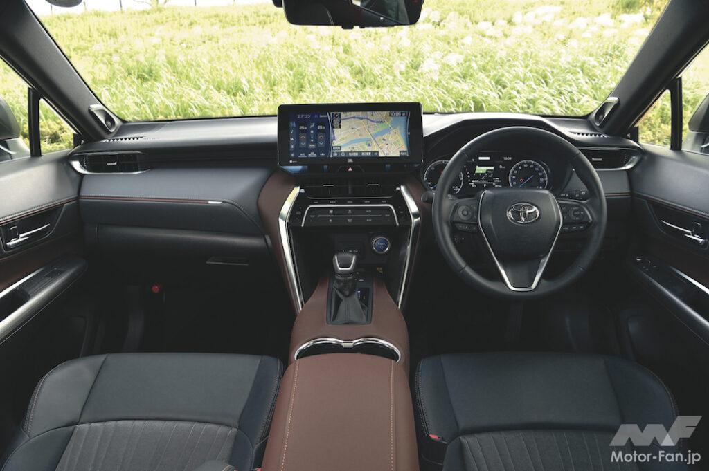 骨格となるGA-Kプラットフォームや2690mmというホイールべ ース、2.0lガソリンと2.5lハイブリッド、4WDシステムといった基本ハードウェアは、RAV4との共通点が多い。しかし、質感の高いエクステリア、レザーをふんだんに使ったインテリアに加えて、調光パノラマルーフ、ドラレコ機能付きデジタルルームミラー、12.3インチセンターディスプレイなど、ハリアー独自の先進技術・おもてなし装備も多い。