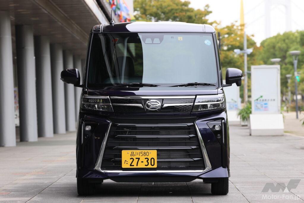 タントの前下がりのボンネットフードに対し、ウェストラインからほぼ水平にボディ前端まで伸ばしてノーズを高くすることでフロントフェイスの”厚さ”を確保したこともこのデザインのポイント。そのために、ヘッドライトはもちろん、ボンネットフードやフロントフェンダーまで新設計しているのだ。