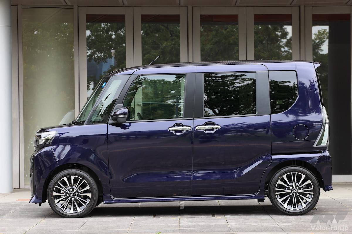タントの前下がりのボンネットフードに対し、ウェストラインからほぼ水平にボディ前端まで伸ばしてノーズを高くすることでフロントフェイスの”厚さ”を確保したこともこのデザインのポイント。そのために、ヘッドライトはもちろん、ボンネットフードやフロントフェンダーまで新設計しているのだ。