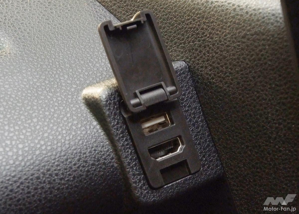 助手席ダッシュボードにはHDMIポートとUSBポートを設置。USBポートはタイプAで出力は2.1A。スマートフォンをはじめとしたデジタル機器の給電だけでなく、データ通信も可能な仕様となっている。好きな画像をUSBメモリを使って本体に取り込めばオリジナルのオープニング画像として設定できる機能もある。
