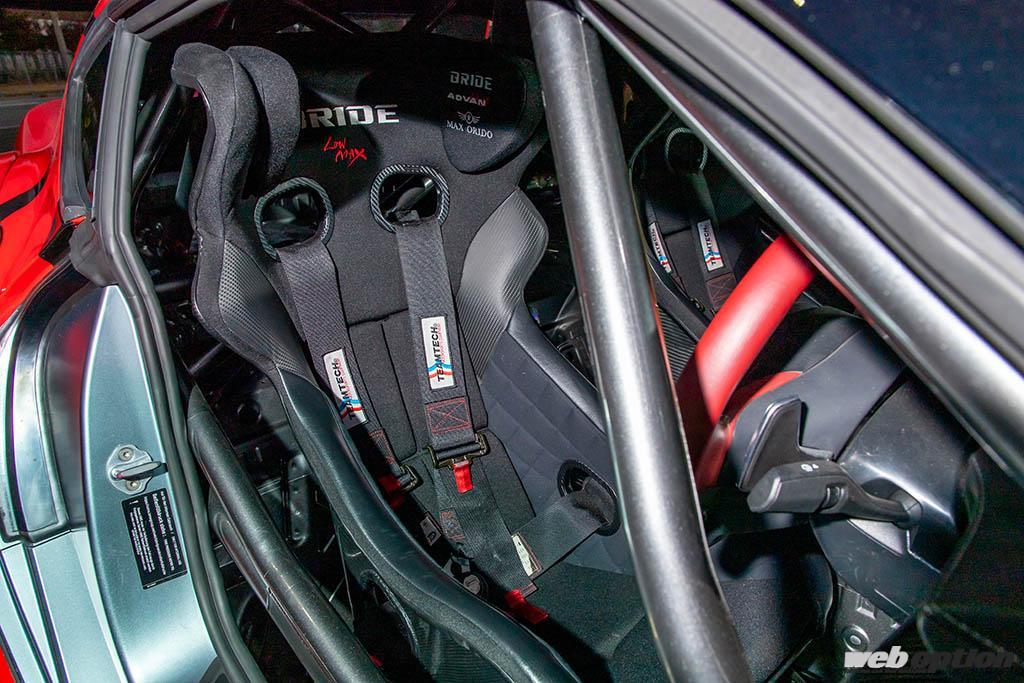 張り巡らされたロールケージも美しい仕上がりで、こちらはMAX ORIDO RACINGでワンオフされた逸品だ。