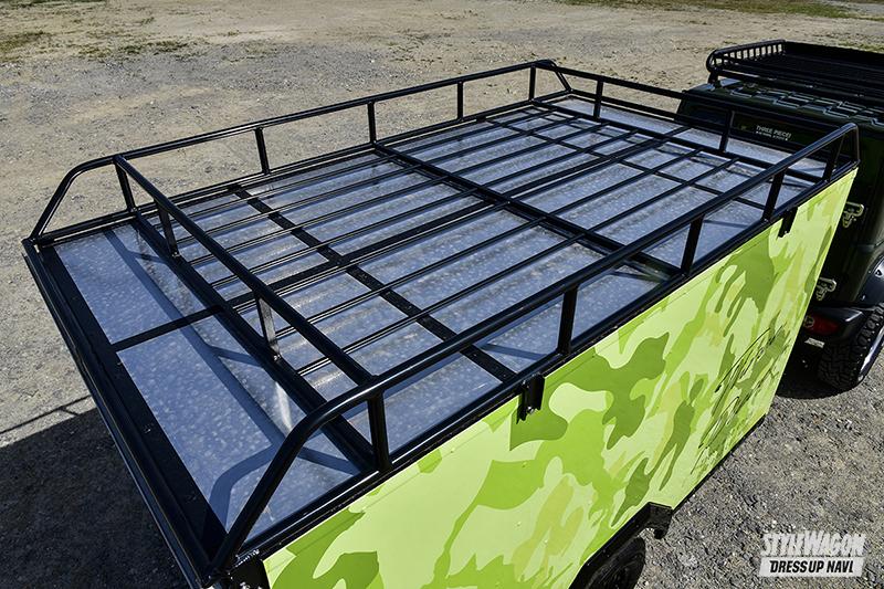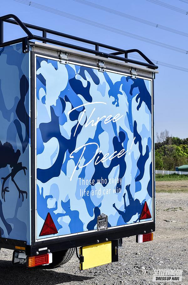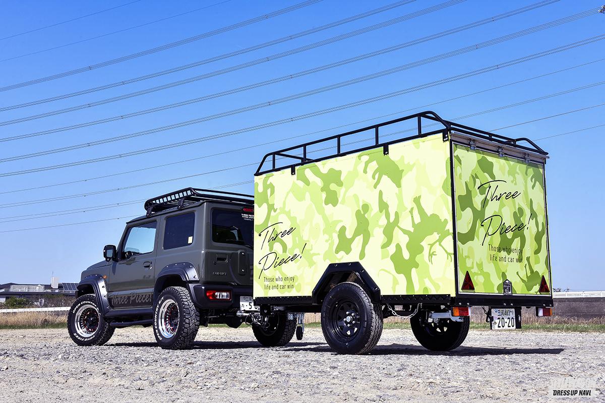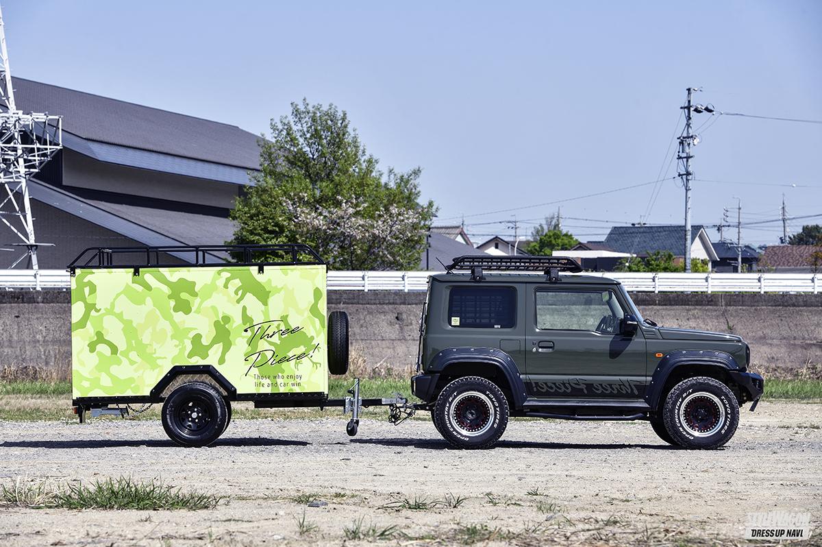 スリーピースのデモカー、シエラは厳選したパーツチョイスで力強いスタイルへと導く。足まわりはジャオスのスプリングで程良く40㎜アップした上で、スリーピースがエナペタルと共同開発したオリジナルショックアブソーバー「サクラ」でしっかり感を確保。そしてスリーピースが推しているヒッチトレーラー、ブラストトレイルのブラストカーゴT-99は多くの荷物を積みたい&目立ちたい人に最適。