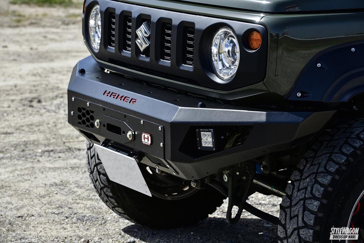 ■外観:HAMERフロントバンパー、WALDオーバーフェンダー、ファイナルビーストサイドガードステップ、ショウワガレージルーフラック 、OGBマルチステップラダー、SOREXヒッチメンバー