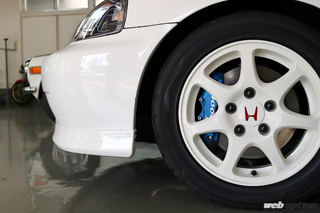 ホイールはあえて純正をフルリメイク。ブレーキキャリパーやサスペンションにはスプーン製パーツが導入されており、純正とは比較にならないほどシャープで余裕のある走りを実現する。
