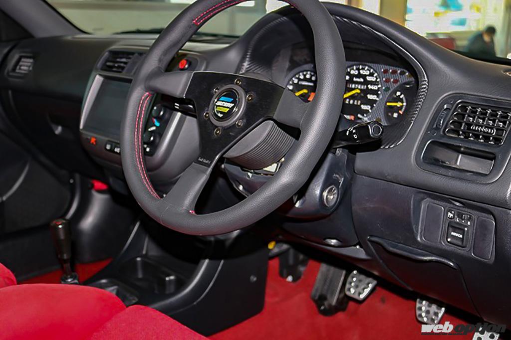 室内はミラーやステアリング、シフトノブがスプーン製に変更されている程度だが、徹底的なクリーニングにより年式を感じさせない仕上がりを誇る。