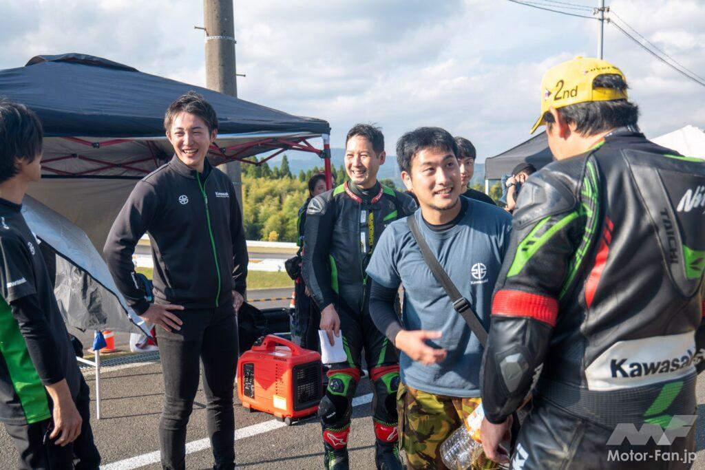 Kawasaki Plaza Racing Teamより全日本ロードレース選手権参戦中の岩戸亮介選手がアドバイザーを担当。KAZE SPA直入ライディングスクールのインストラクターも務める岩戸選手が各参加者のピットを訪問しコース攻略などライディングについてのアドバイスを行った。