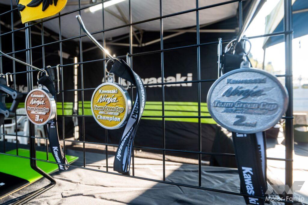 当日はシリーズランキング表彰式が行われ、プレゼンターのカワサキモータースジャパン代表取締役社長の桐野英子よりシリーズランキング1位~3位入賞者へメダルが贈呈されたた。更にシリーズチャンピオンにはチャンピオンTシャツが贈られた。