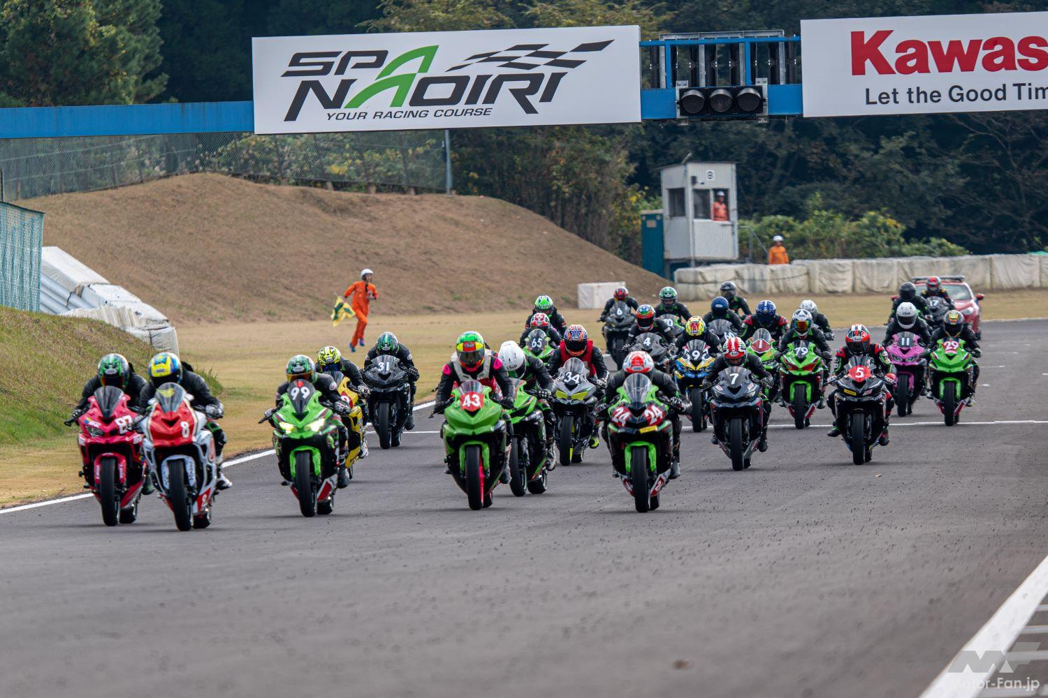 Ninja Team Green Cup開催以来初のフルグリッドでの開催となったが、予選、決勝共に転倒はなく27台のNinja ZX-25R全車が無事走り切った。