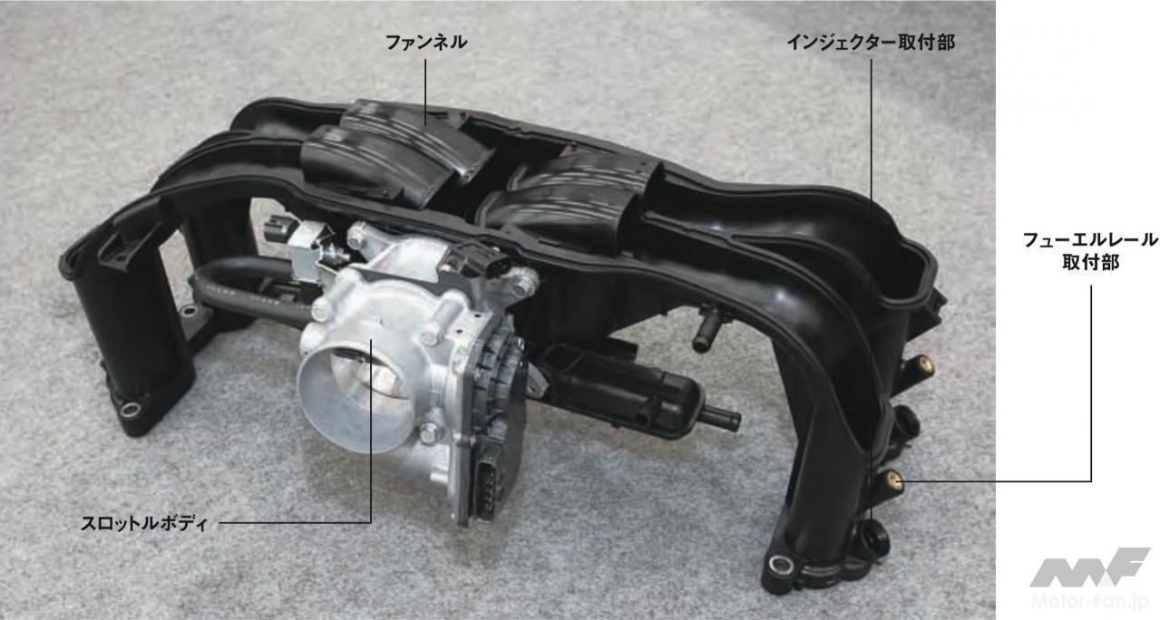 インマニ形状と径はもちろん、体積効率を高めるためのファンネルも各気筒ごとに最適化したものを備えているが、それを含めても基本構成はたった4点の射出成形部品のみ。こうなると、もはや金属製インマニを採用する理由を探すほうが難しいとさえ思えてくる。