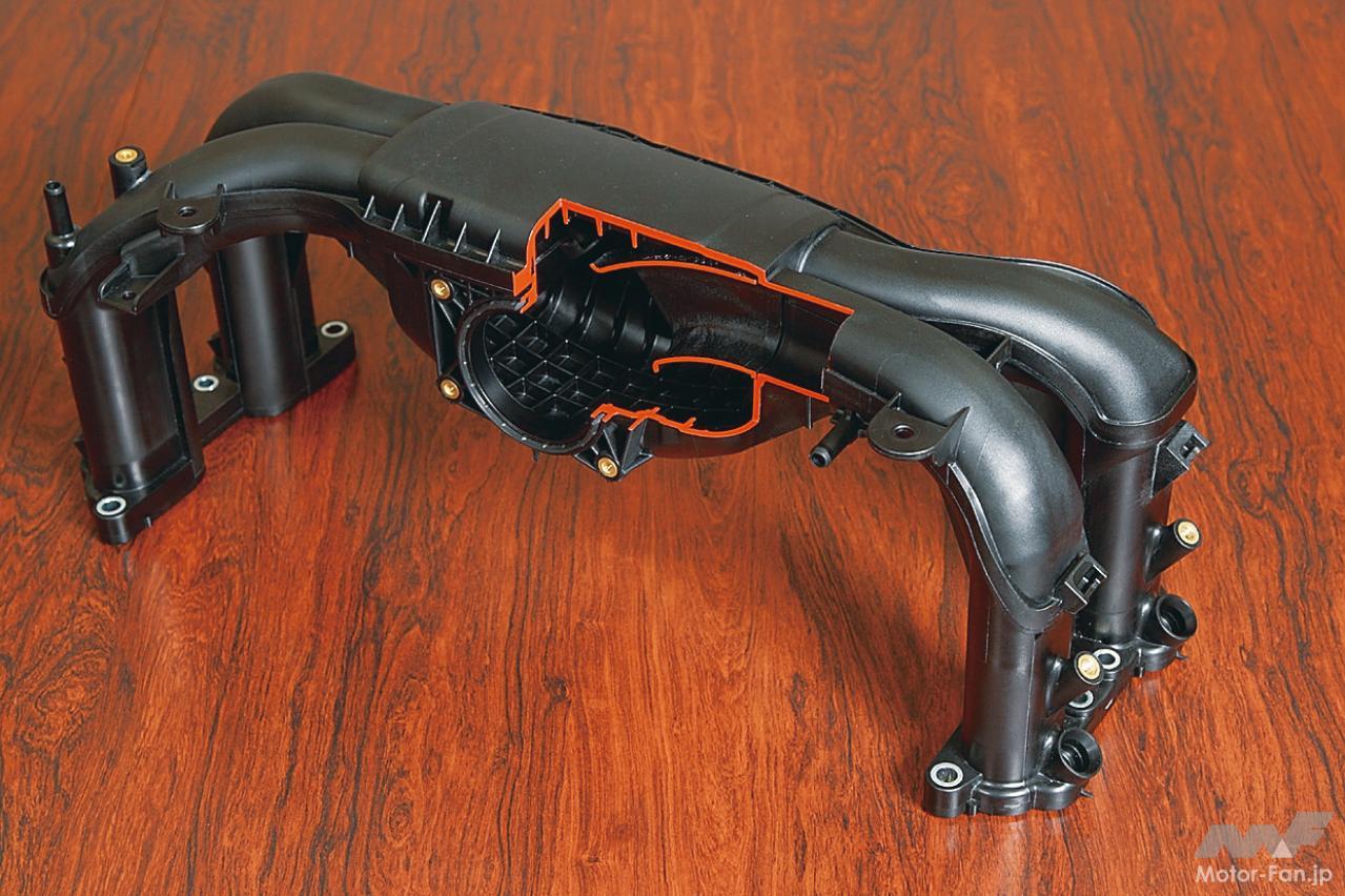 エンジン関連の分野でも、さまざまな部分で軽量化のための努力が重ねられている。インテークマニフォールド(以下インマニと略)の樹脂化もその一環で、欧州メーカーでは1980年代末ごろから樹脂化が進められてきた。