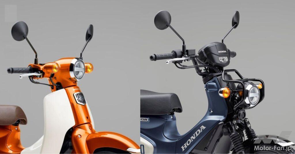 スーパーカブ110とクロスカブ110は、力強い出力特性と燃費性能の両立を図りながら最新の排出ガス規制に適合したエンジンを搭載。前後輪にキャストホイールおよびチューブレスタイヤを採用し、前輪ディスクブレーキには制動時の安心感に寄与するABSを装備。また、メーター内液晶パネルにはギアポジションや時計、平均燃費などを表示する機能がある。