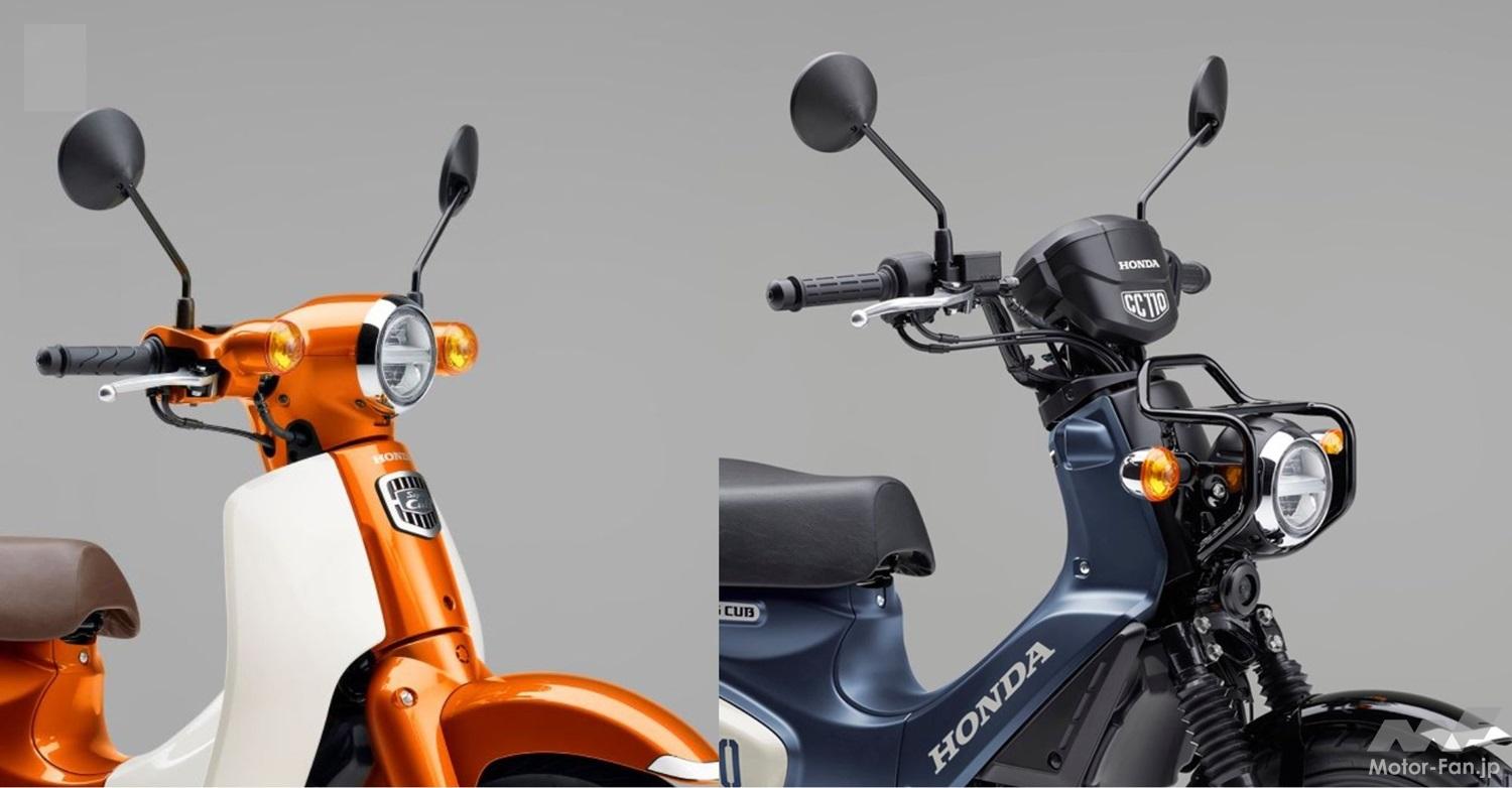 スーパーカブ110とクロスカブ110は、力強い出力特性と燃費性能の両立を図りながら最新の排出ガス規制に適合したエンジンを搭載。前後輪にキャストホイールおよびチューブレスタイヤを採用し、前輪ディスクブレーキには制動時の安心感に寄与するABSを装備。また、メーター内液晶パネルにはギアポジションや時計、平均燃費などを表示する機能がある。