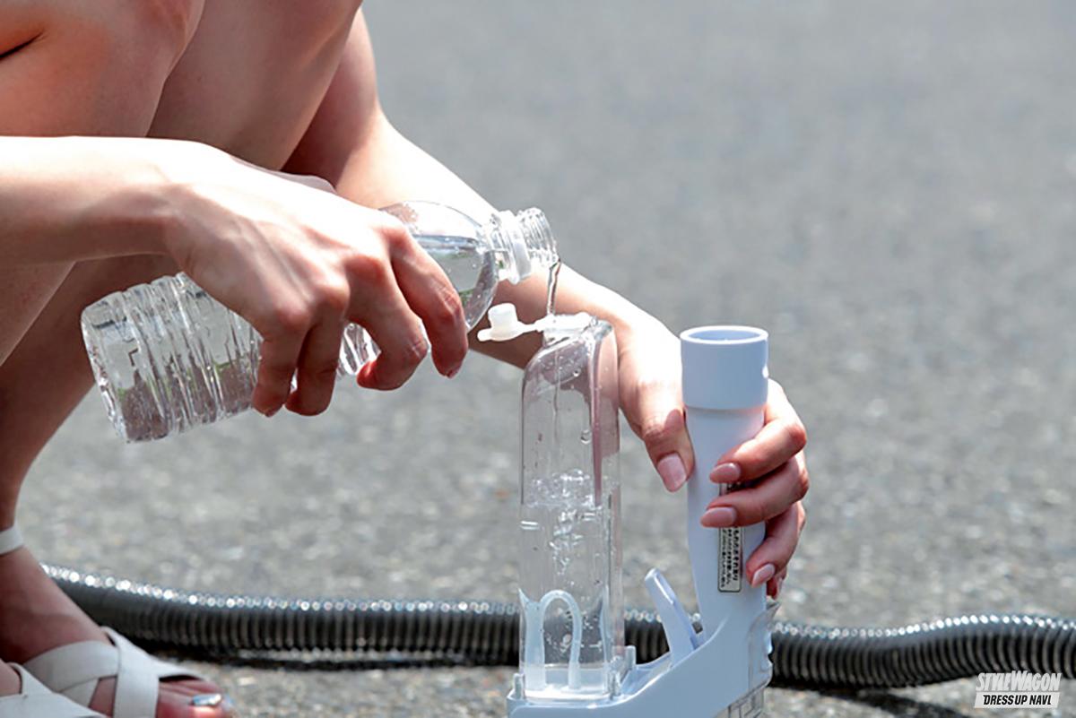 スイッチをオンにすると、吸い込みが始まる。この点は掃除機と同じ使い勝手で、どんどんと水が吸い込まれていく。