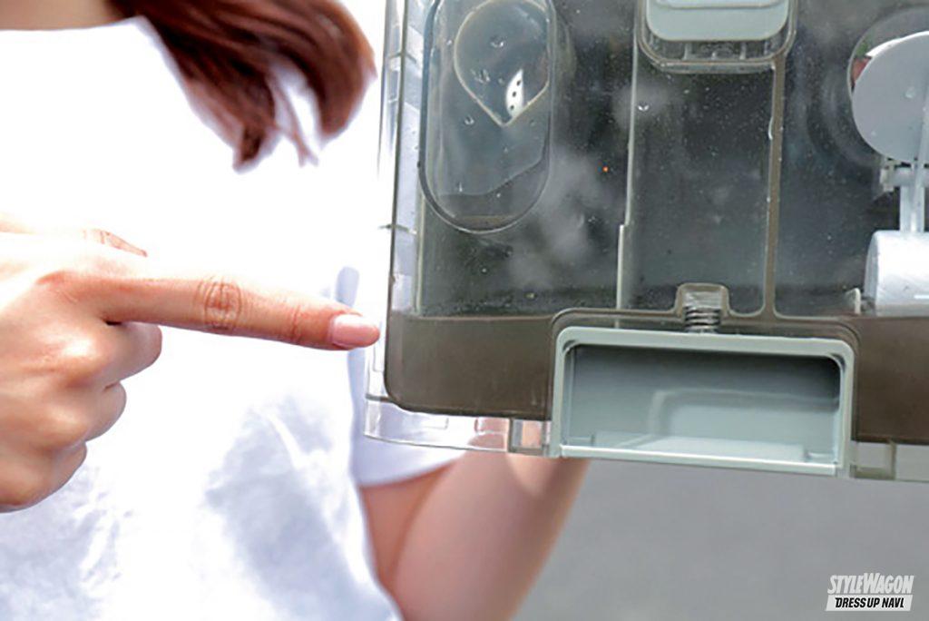 取り説によれば水を使用するとあるが、ダメージの少ない重曹水やセスキ水を使うと、さらに汚れ落とし効果が高まるだろう。