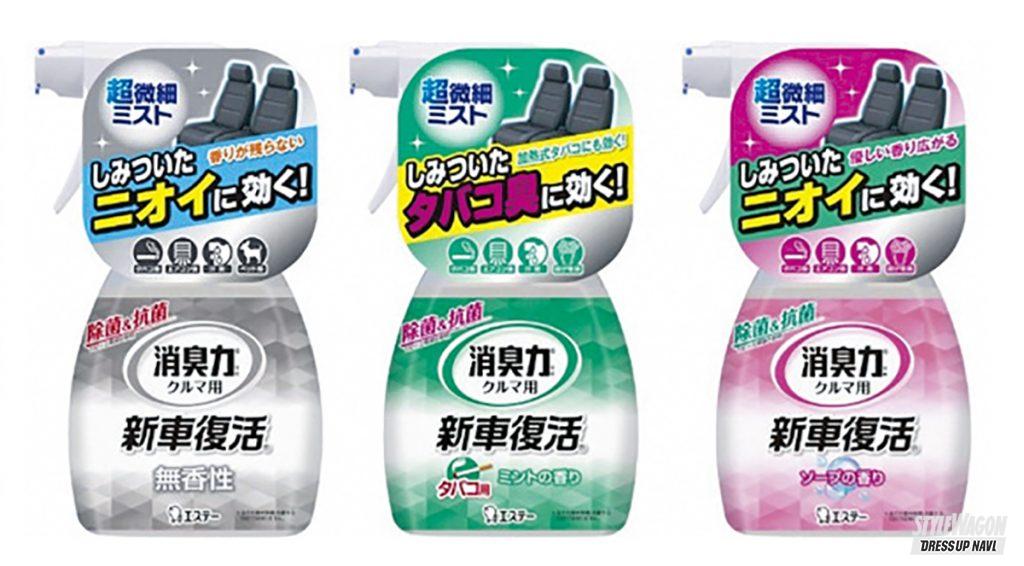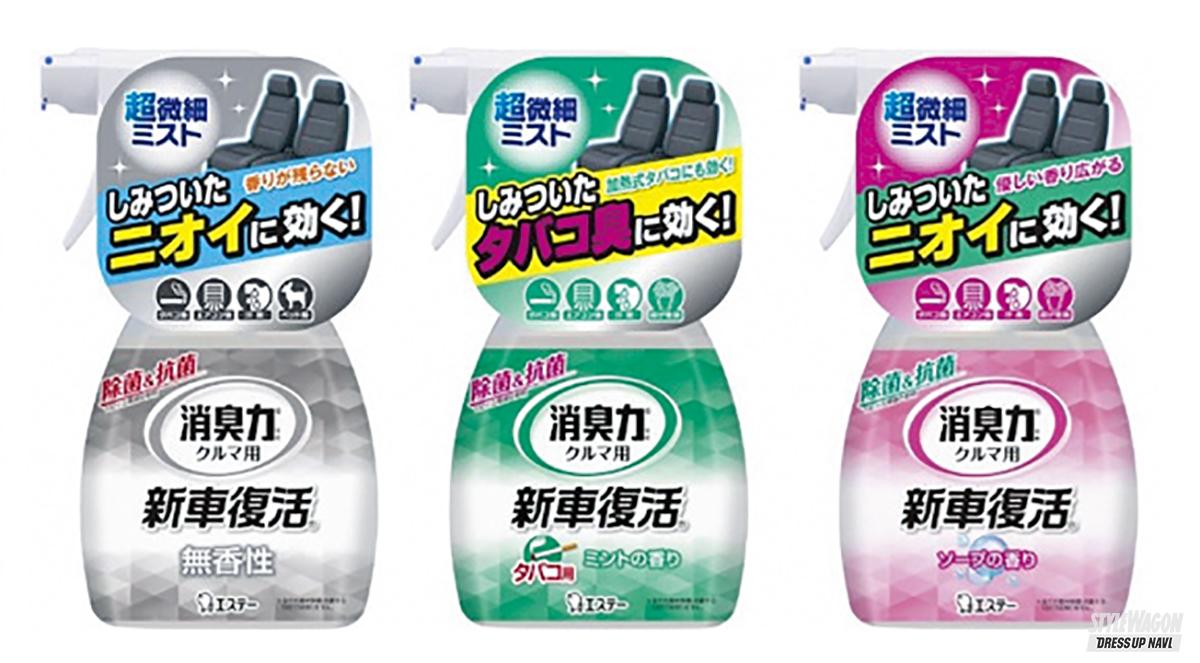 超微細ミストによって、シートなどのニオイだけでなく、空間のニオイもすっきり消臭。無香性のほかミントなど香り付きもラインアップする。