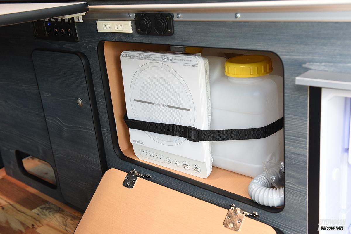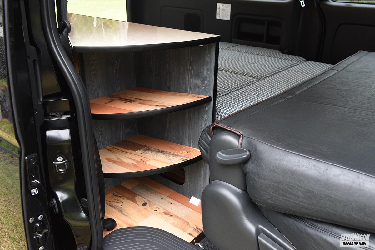 1ナンバーのワイドボディ、スーパーGL・ダークプライムⅡをベースとした「エクスペディション」。ベッドやシンクの設置など8ナンバーのキャンピング登録を行う上の基準をすべて満たしているが、驚くべきはキャンピングカーとしてはリーズナブルな500万円を切る価格設定としていること。あえて2列目シートを純正のままとするなど限界までコストを削減することでお手頃価格としているが、それでいて調光機能付きの照明や豊富な収納、冷蔵庫など装備がかなり充実しているから満足度は高い。もちろん豊富なオプションを用意しているから、ここから自分好みの1台を製作することも可能だ。しかもボディ自体は架装せずミドルルーフのままだから街乗りでも扱いやすく、メインカーとしてもオススメの1台。気になった人はぜひ問い合わせてみよう。