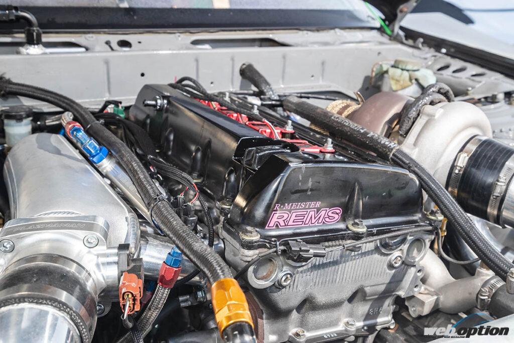 以前はHKSのキャパシティアップグレードキットを軸にしたSR20DET改2.2L仕様だったが、2023年シーズン前にエンジン本体をアップデート。排気量こそ2.2Lのままだが、ムービングパーツを海外製パーツで組み直し、ヘッドも可変バルタイ機構を持つVEヘッドとされた。