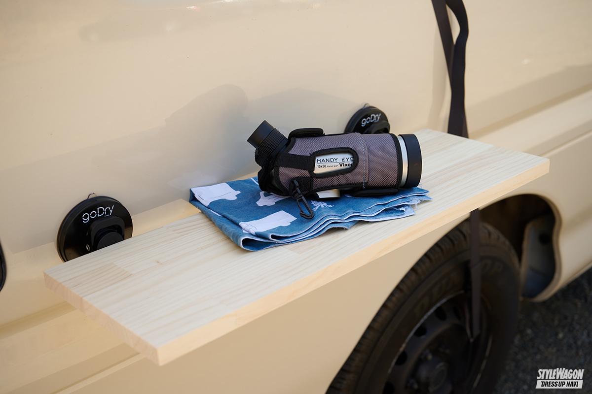 キャンプでは焚き火をすることも多く、焚き火アイテムにはこだわりのグッズが集中する。機能性もさることながら、見た目の美しさやフィールドでの存在感など、気にするポイントはたくさんある。クルマ選びの時と同じように、他の人と被らないギア探しなど、グッズ選びすら楽しんでいる様子でもある。