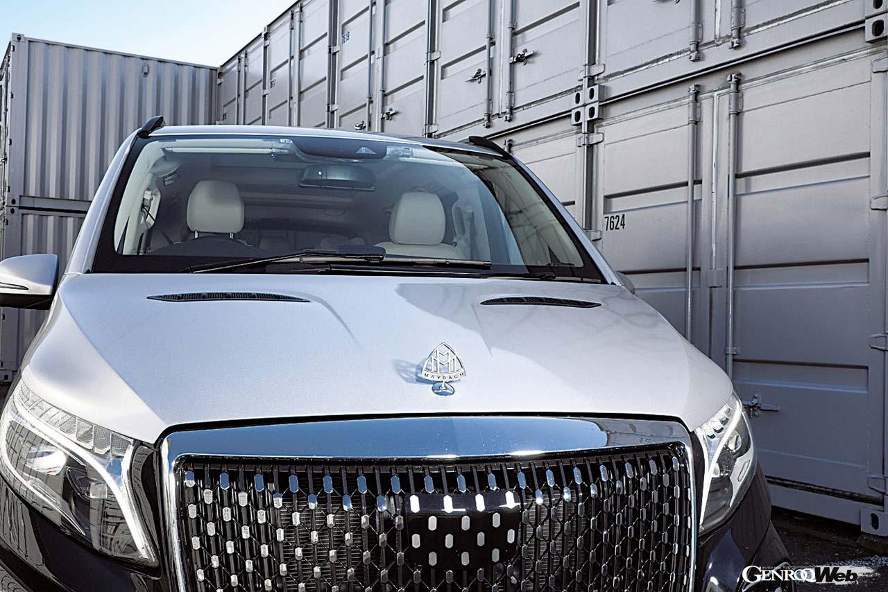 最新のボディキットは、迫力と豪華さを兼ね備えたオリジナルデザインの大きなグリルに、T字型のウインカーとデイライトを装備したワイドなフロントバンパーデザインが大きな特長となっている。さらにキットに含まれる専用ボンネットには、新たにダクト風の装飾パネルが追加され、より迫力の増したフロントデザインへと進化。これらに加えて、左右4本出し風のマフラーカッターを備えたリヤバンパーも、このボディキットには含まれる。前後左右に付いているマイバッハエンブレムはオプションとなっている。