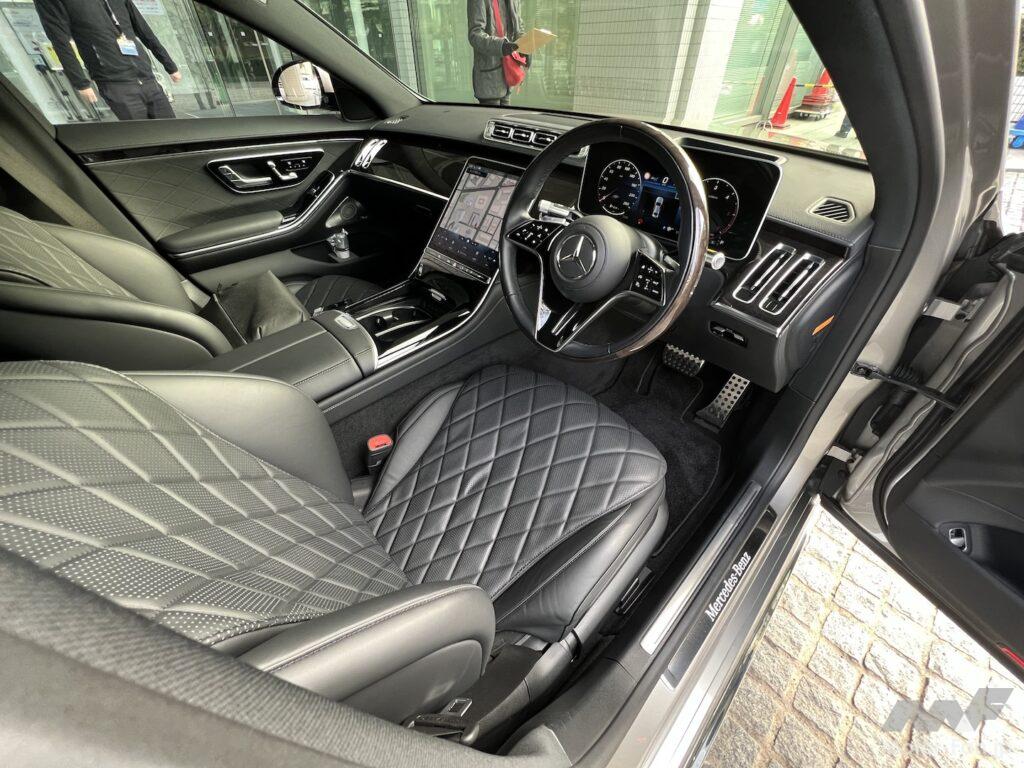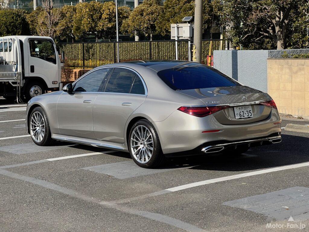 [ S 400 d 4MATIC ] 個体VIN:W1K2230332A004883 車検証記載車重:2180kg(前軸1180kg/後軸1000kg) 試乗車装着タイヤ:ピレリ P-ZERO 前255/40-20 後285/35-20 ■ 全長×全幅×全高:5180mm×1920mm×1505mm ■ ホイールベース:3105mm ■ エンジン 形式:直列6気筒DOHCターボディーゼル 排気量:2924cc 最高出力:243kW(330PS)/3600-4200rpm 最大トルク:700Nm(71.4kgf・m)/1200-3200rpm ■ トランスミッション:9速AT ■ 駆動方式:F・AWD ■ サスペンション F:ダブルウィッシュボーン/R:マルチリンク ■ 価格:13,380,000円