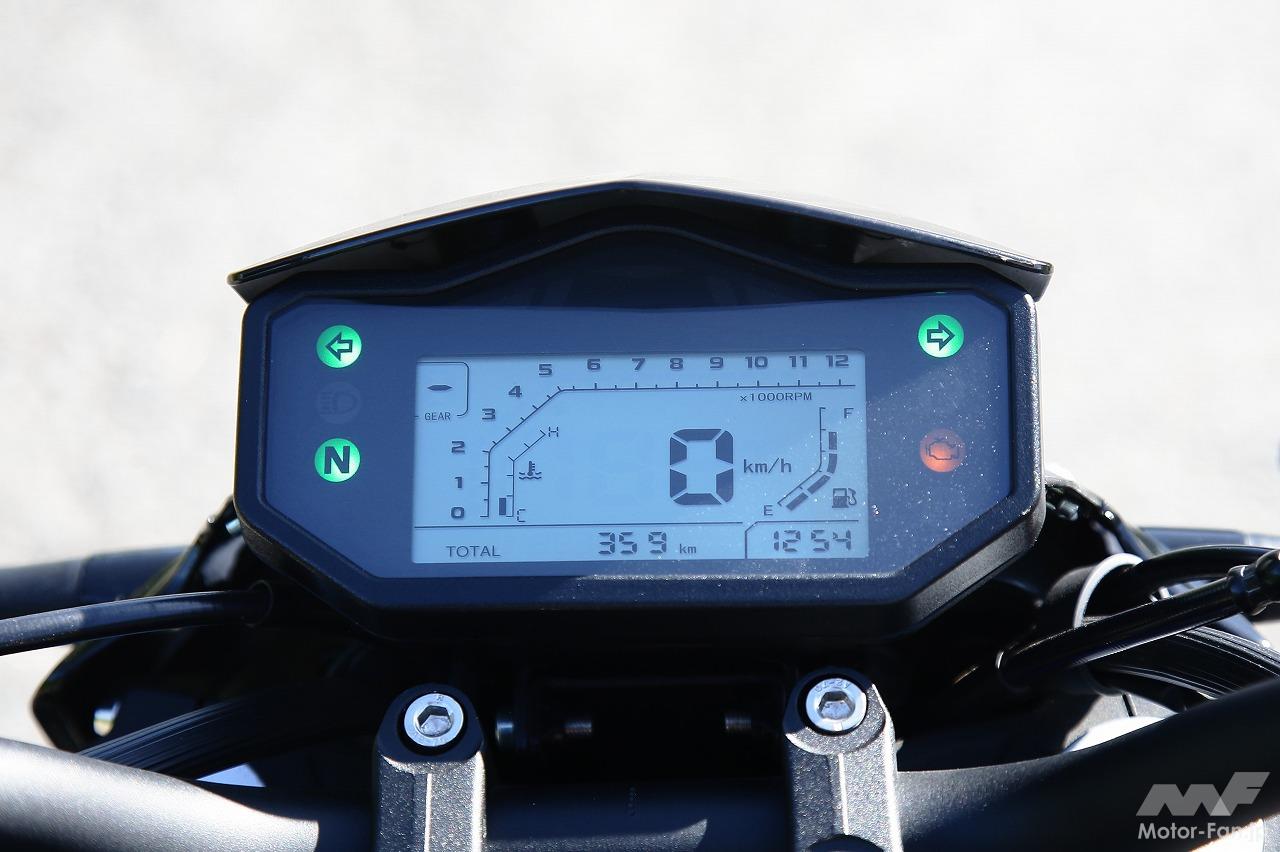 メーターはフルデジタルタイプ。シンプルかつ見やすいレイアウトで必要な情報がすぐに読み取れる。
