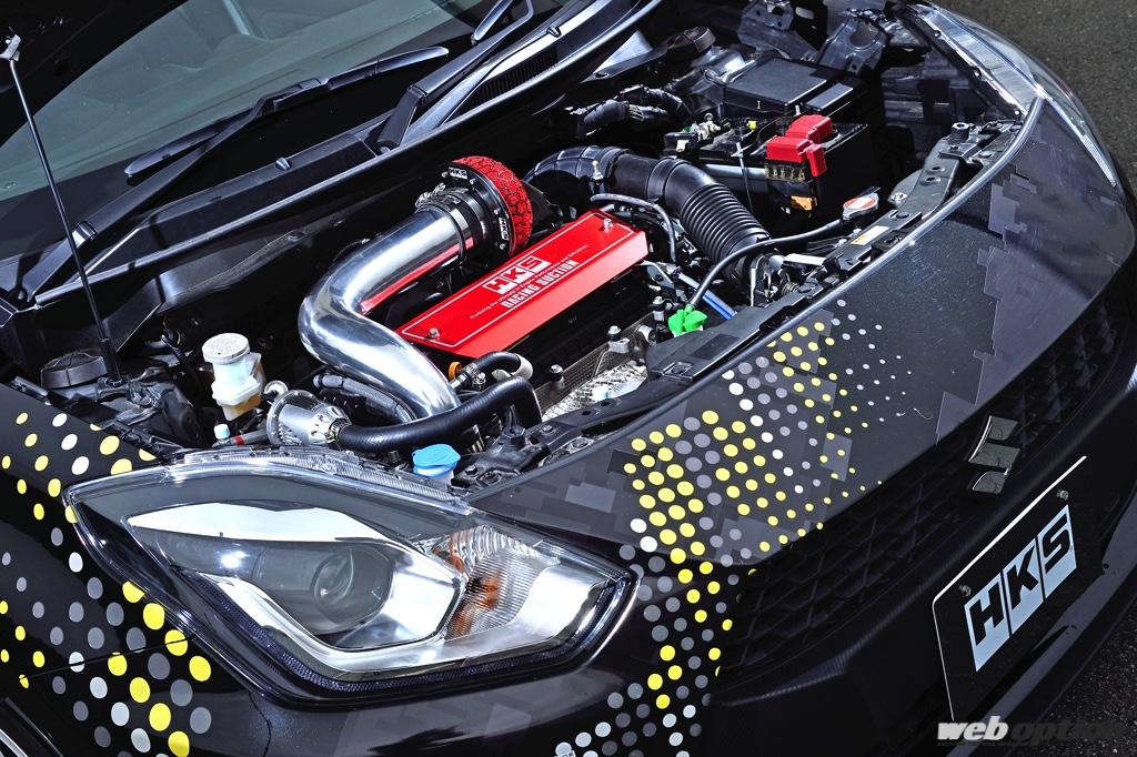 車高調からポン付けタービンまでラインナップは多岐に渡るが、ここで注目したいのはAT車チューンについて。HKSでは6速ATモデルの開発車両も用意。パーツの適合確認を進めるなど、ユーザーが安心してカスタマイズに取り組めるようにしているのだ。デモカーを見ていく。